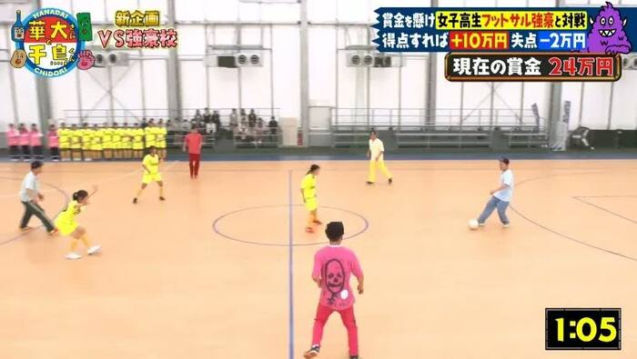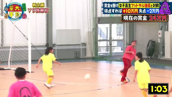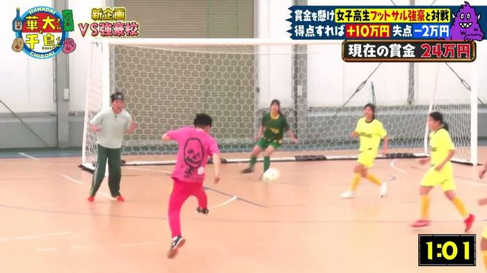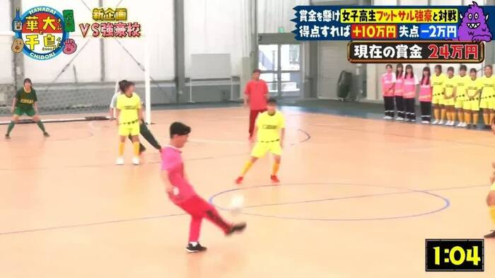 制限時間6分で、ゴールを決めるごとに10万円獲得、失点すると2万円の減額となり、獲得した賞金は全員で山分け!