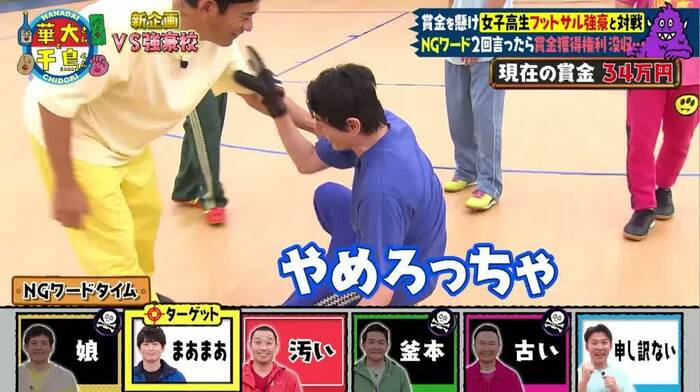 大悟さんは、NGワード=「釜本」のノブさんをターゲットにして、おもむろにズボンを短くまくりあげると…。