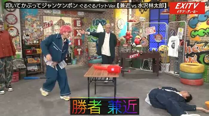 まったく勝負にならない水沢さんのために、回転を10回から5回に変更して再度スタート。接戦が続きますが、勝者は余裕の動きを見せた兼近さんに。「りんたろうごときに俺が負けるかよ!」と勝者の雄たけびをあげました。