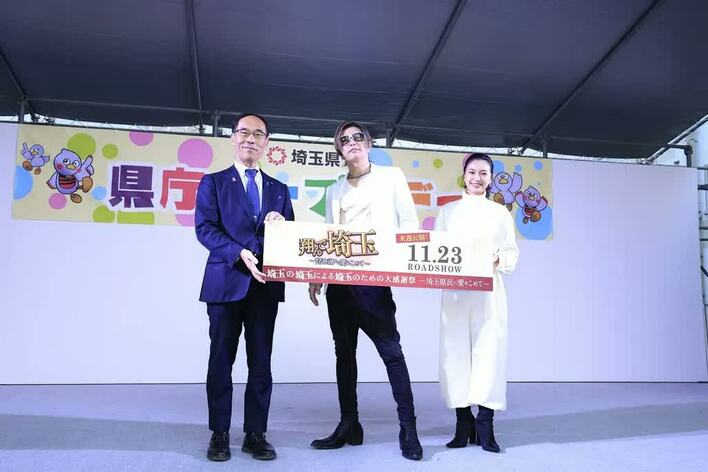 一方、本作をいち早く鑑賞した大野県知事は「中身はどうあれ、埼玉県をとりあげていただけるのはありがたい」と、授賞式でのGACKTさんの発言をなぞりながら笑いを誘い、“埼玉県の映画”として、公式に認めます!」と声高に宣言。