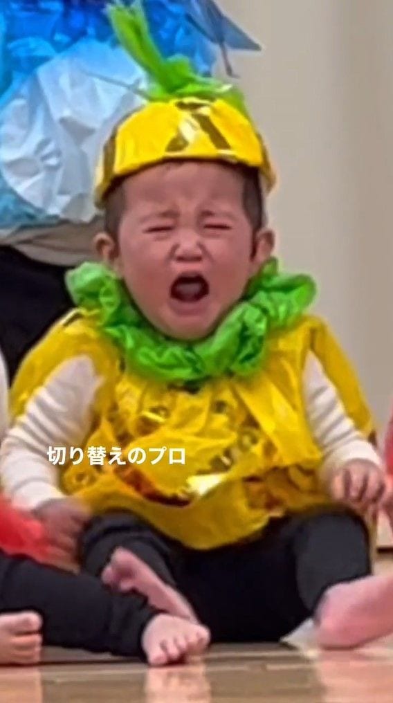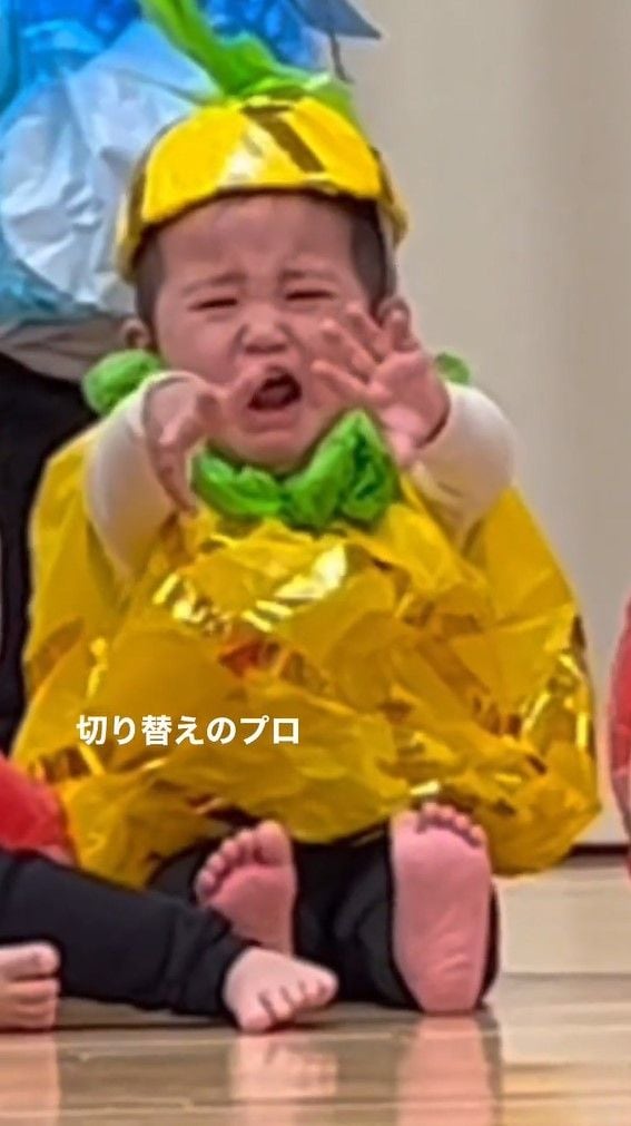 保育園の発表会で号泣する1歳11カ月の男の子が、その直後に見せたあまりにも切り替えが早すぎる姿に、「天才子役」「やばい笑い過呼吸なりそう」「将来有望すぎる」とコメントが寄せられ、SNSで話題になっています。