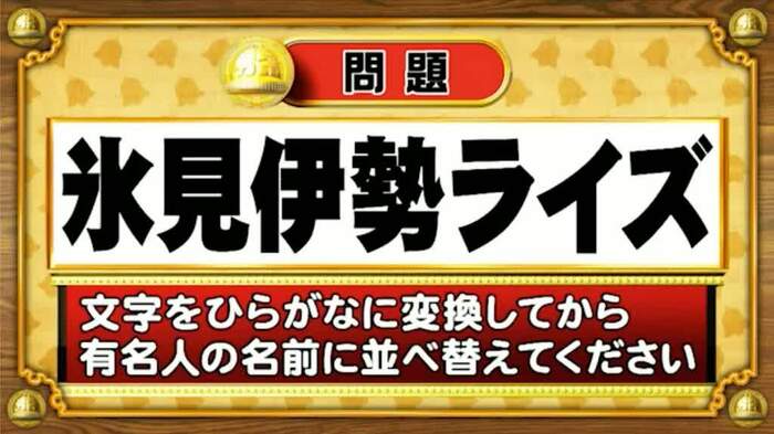 次は、シャッフル人名の問題。次の文字をひらがなに変換してから、ある有名人の名前に並べ替えてください。