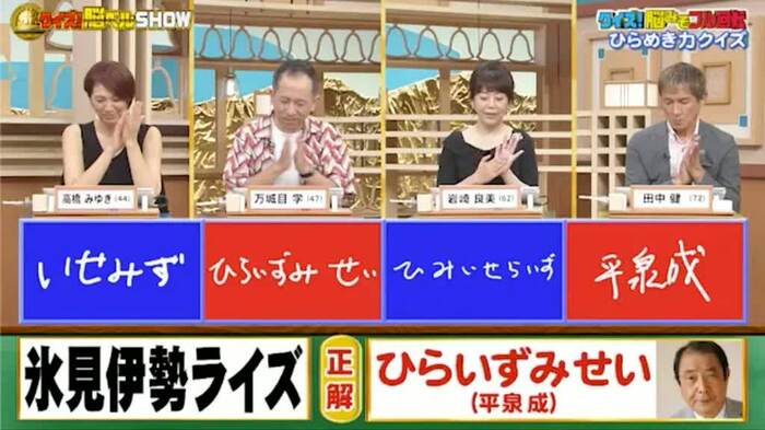 正解は「ひらいずみせい(平泉成)」。万城目さんと田中さんの2人が正解。