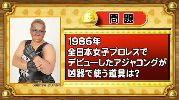 最後は、凶器の問題。今から37年前の1986年に全日本女子プロレスからデビューしたアジャコングさんが試合の中で凶器として使う道具とは?