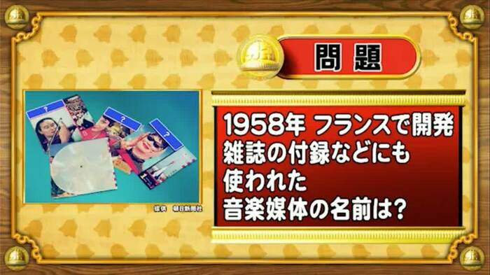 次は、なつかしアイテムの問題。今から65年前の1958年にフランスで開発され、雑誌の付録などに使われた音楽媒体の名前は何でしょうか?