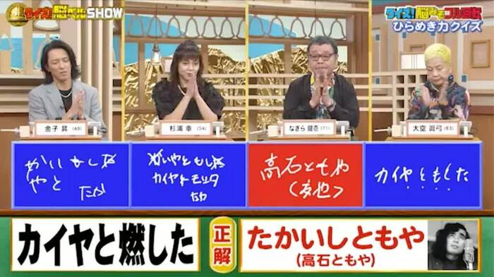正解は「たかいしともや(高石ともや)」。なぎらさんが正解!