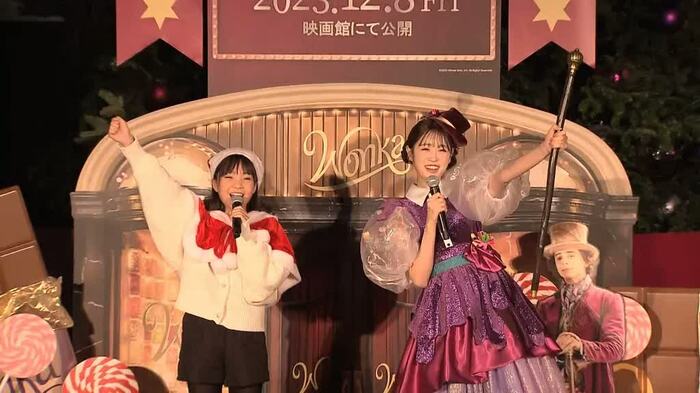 髙橋ひかるさんと澤井梨丘さんが11月15日、映画「ウォンカとチョコレート工場のはじまり」ウォンカのチョコレートツリー点灯式に出席しました。