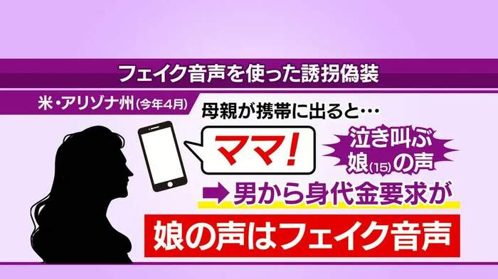 またアメリカでは、母が電話に出ると15歳の娘の泣き叫ぶ声が聞こえてきて、身代金を要求されたものの、娘の音声はフェイク音声だったという事件も発生したといいます。