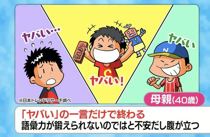 「12歳の息子が、なんでも『ヤバい』のひと言で終わらせている。語彙力が鍛えられないのではないかと不安」という、40代女性のお悩みも紹介されました。