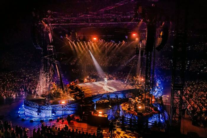 今回のツアーは、全54公演57万4000人を動員するユーミンのキャリア最大規模。アリーナの中央に、巨大な海賊船を模したステージがあり、船長のユーミンがお客さんを乗せ航海をするという特大級のエンターテインメントショーとなっています。