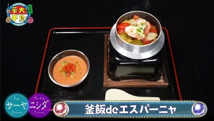 メインは、ニシダさんが幼少期に住んでいたスペインにちなんで、トマトやサフランを使った「パエリア風釜飯」。ミキサーに、キュウリやトマトなどを入れて作った冷製スープスープ「ガスパチョ」を組み合わせました。