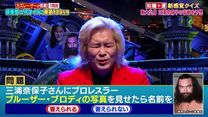 問題:東大出身の三浦奈保子さんに、アメリカのプロレスラー、ブルーザー・ブロディ(故人)さんの写真を見せたら、名前を答えられる?答えられない?