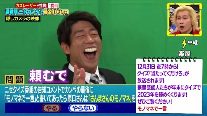 カンペの最後に「モノマネで一言」と書いてあったら、原口あきまささんは明石家さんまさんのモノマネを、やる?やらない?(正解:やらない)