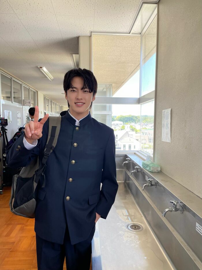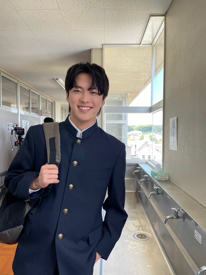 さらに、学校の廊下で撮影された、学ラン姿の河野さんのオフショットも公開されました。「休憩中もいつも笑顔の飯田です」という文章とともに、ニコニコの河野さんの写真が投稿されています。