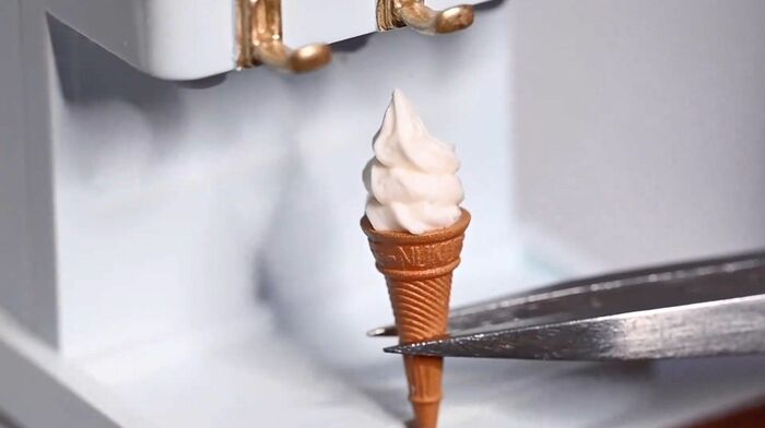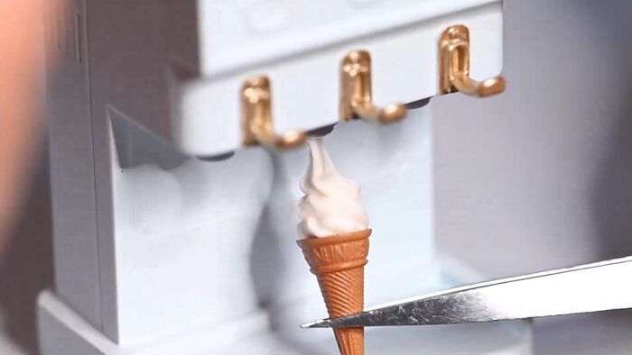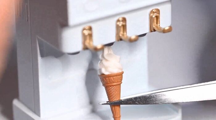 今回話題になったのは、ミニチュアアーティストである田中智さんが夏らしい作品を作ろうと思い制作した「ソフトクリームメーカー」のミニチュア作品の動画。
