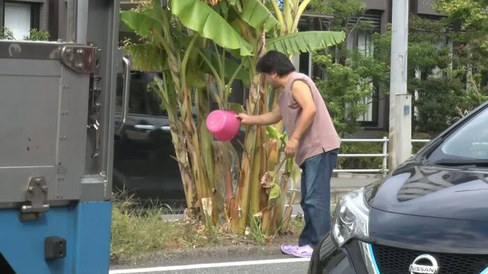 無許可で植えると違法になるため、バナナの木を植えたという男性を直撃し注意すると、中央分離帯のポイ捨てをなくしたいという思いからバナナの木を植えたそう。