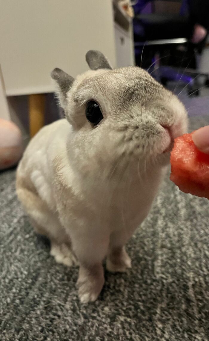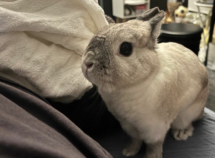 キュルンとした目でこちらを見つめるのは、うさぎの「おこげ」ちゃん、7歳の女の子。