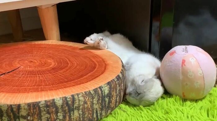 飼い主によると、切り株柄のクッションはお気に入りの場所だそうで、遊んだ後などによく寝ているんだとか。実はこの動画は、5年ほど前に撮影したものだそうで、当時もXに投稿したそうですが、かわいらしい寝姿をもう一度見てもらいたいと思い、今回投稿したといいます。