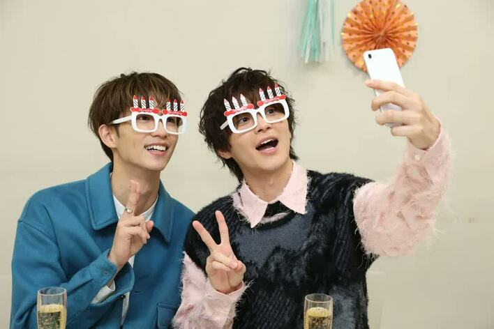 誕生日会の間、仲良さそうにお互いの発言をにこにこしながら聞いていたり、スタッフから手渡されたパーティーグッズの眼鏡をかけて自撮りをしたりと、終始ハッピーな雰囲気を作り出していました。
