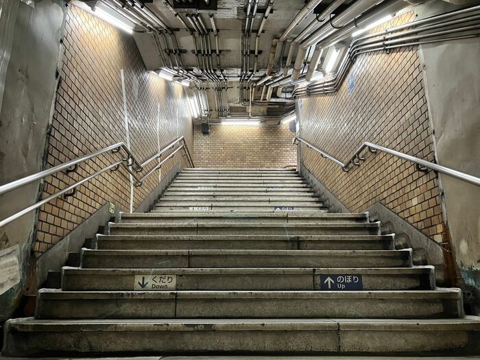駅名の看板のデザイン、手すりや点字ブロックの設置など、建設当初から細かく変わっていることがよく分かります。