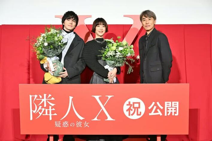 12月2日、映画「隣⼈X -疑惑の彼⼥-」の公開記念舞台挨拶が行われ、主演を務める上野樹里さん、林遣都さん、熊澤尚人監督が登壇しました。