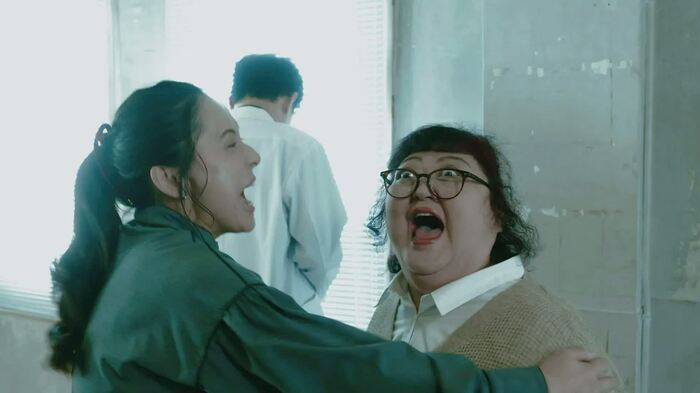 ブラインドを開けようと手をかけたその刹那、一瞬だけ、関口の首を締め上げる彩佳の手が増え、3本に見える。