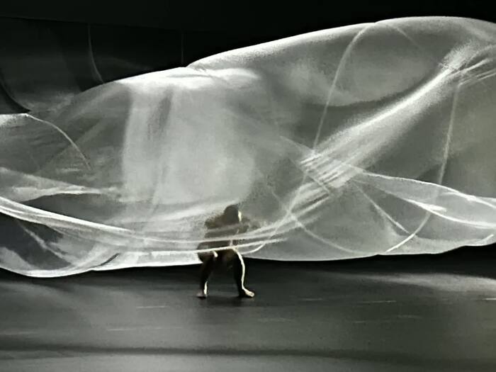 ダンスパフォーマンスがある日もあるのでチェックしてみてください。光と布の具合によって、ダンサーも黒く見えたり、白っぽく見えたり、モノクロな世界の動と静に引き込まれます。