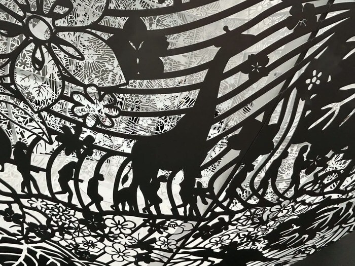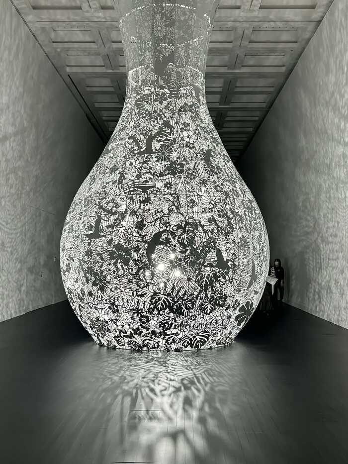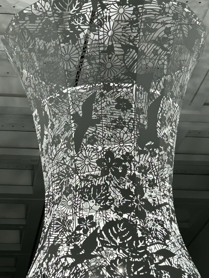 映し出されている模様は世界のあらゆる文化を表し、壺は地球全体をイメージしているそうです。花や鳥、どんな模様があるのかを近づいて確かめるのも楽しいです。