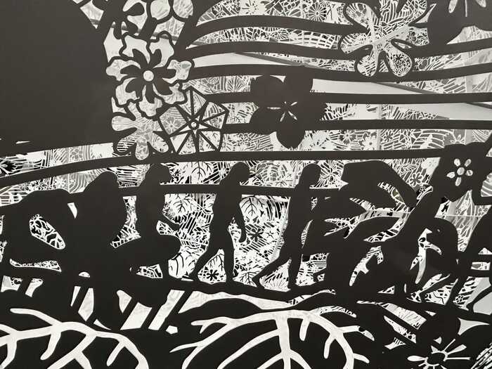 床に散りばめられた日本語や英語の詩を発見できたときの喜びはまさに“幸せ”を感じる瞬間でした。大巻さんは、詩について、「遠いところには遠い意味が、近いところには近い意味がある」と話していましたが、目を凝らして見つけて、その言葉の意味をかみしめてみてください。