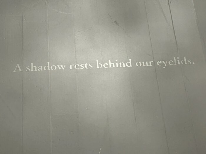 床を見ると、詩人の関口涼子さんの詩が書かれているのに気づきます。初めてのコラボレーションだそうですが、大巻さんは「空間を歩きながらふと足元を見ると言葉に気づく。ライトの光によって、床から浮き上がったり、消えていく。普段は気づかない些細な気持ちに気づいてもらいたい」と床の色をあえて黒にした理由を説明します。