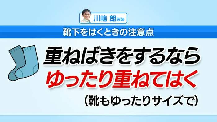 川嶋医師は、靴下の履き方やお風呂の入り方についてもアドバイス。