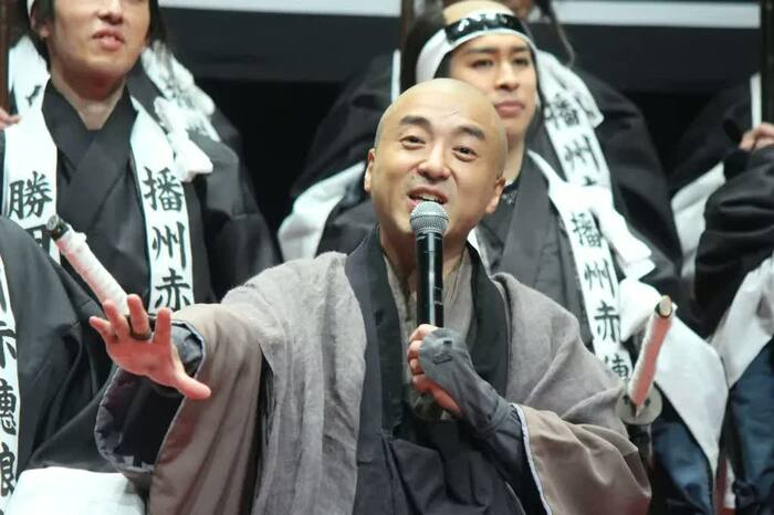 ムロさんは、吉良孝証の劇中衣装と丸刈り姿で、永山さんは、赤穂浪士の姿で登場しました。