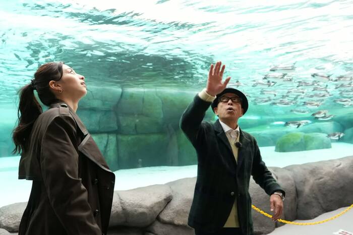 2023年4月にオープンした新施設「ペンギンパーク&アシカワーフ」や、勢いよく池にダイブすることで人気のホッキョクグマを見て楽しんでいると、2人の前に園長が登場。