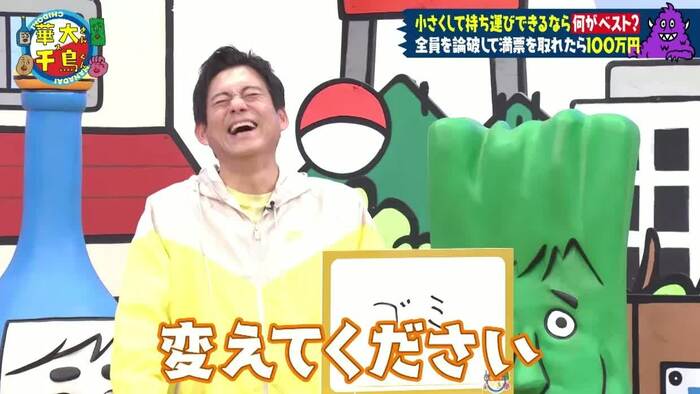 「バカリさんの独走を許すわけにはいかない」と意気込む山内さんは「ゴミ処理場」と回答するも「ゴミが小さくなればゴミ処理場も小さい規模で済む」と正論を言われてぐうの音も出ませんでした。