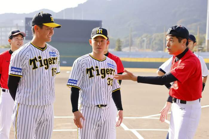 オープニングで糸原選手と西選手が登場するなり、芸能人オールスターズの監督を務める佐藤さんは「もうこれは勝ちましたね!」と勝利を確信。糸原選手も「今日のために仕上げてきたので」と気合い十分。