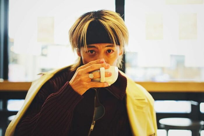 続けて、視線をこちらに送りながら飲み物を飲んでいる瞬間をとらえたショットも公開。