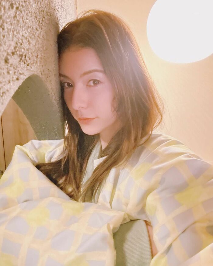 他にも、旅館で過ごすときに着ることができる、カーキと黄色を基調にしたはんてんを着たスザンヌさんの自撮りショットも公開!