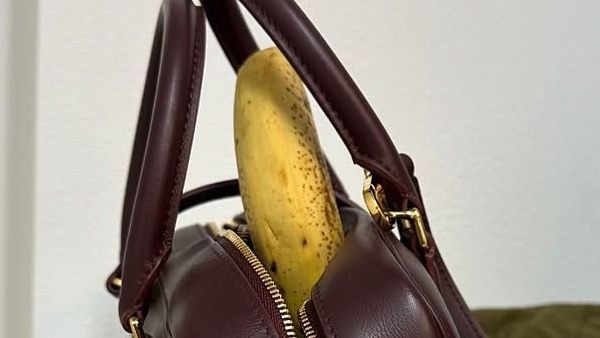 チャックの開いたバッグから出ているのはなんと“バナナ”!!