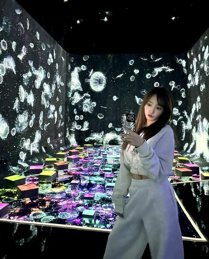 「チームラボプラネッツ新エリア行ってきたよ」というコメントと共にチームラボの新エリアで遊ぶ様子を投稿しました。
