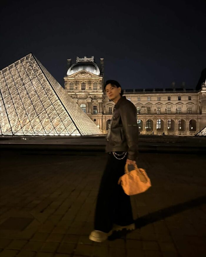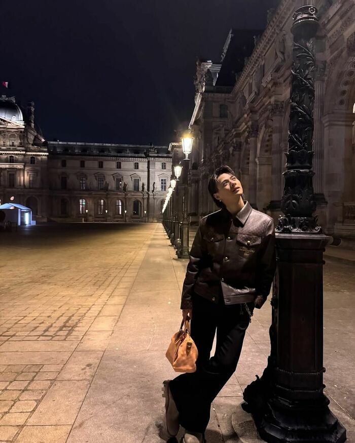 さらに1月23日には、夜のパリでのオフショットを披露。ルーブル美術館をバックに、レザージャケットに黒のパンツを合わせたコーディネートで、カメラ目線をきめる姿や