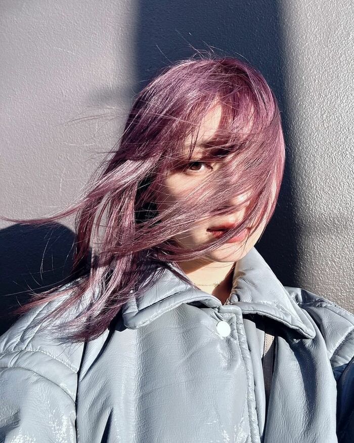 そこに映っていたのは、以前は明るめのブラウンだった髪色が“雰囲気ガラリ”…鮮やかなパープルヘアになった吉川さん。