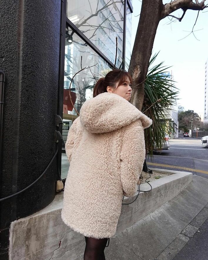 モコモコアウターには大きなフードが付いていますが、実は「フード裏返し気づかず〜日常です」と、よくフードが裏返しになってしまうことを明かした生見さんなのでした。