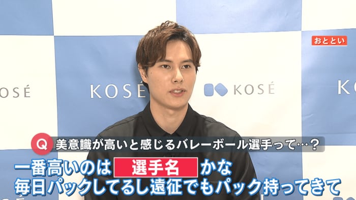 202年9月7日、都内で行われた『髙橋藍×コーセー ファンミーティング』にコーセーの雪肌精アンバサダー、ONE BY KOSÉクリアビールセラムのキャンペーンキャラクターとして登場したバレーボール日本代表の髙橋藍選手(23)。
