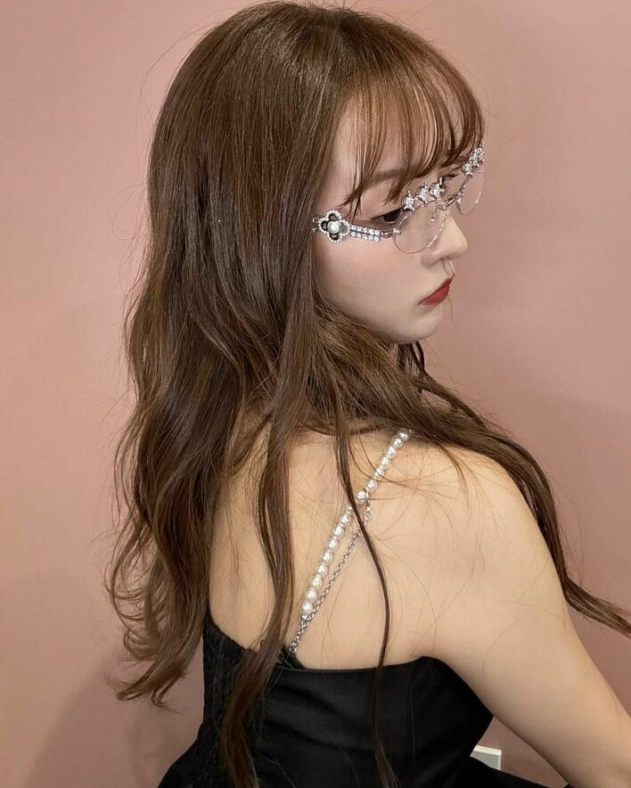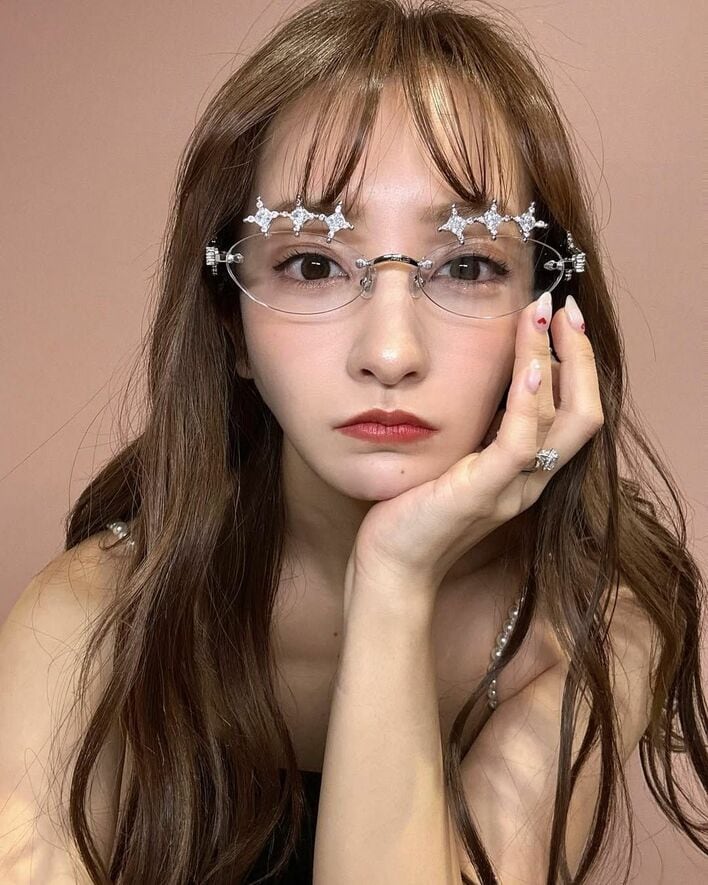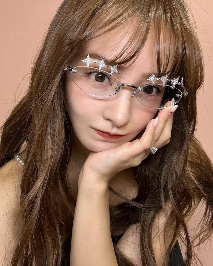 また、白いパールがデザインされたアクセサリー風のサングラスを頭にかけ、縁なしフレームのサングラスに手を添えて、ウインクをしてみたり…