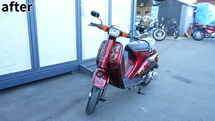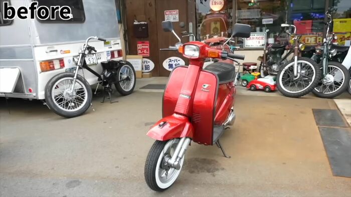 シンプルな赤色だったスクーターが、深みのある赤色になり、車体にはゴールドのデザインが施されています。