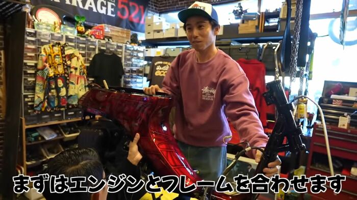 2024年11月のYouTube投稿で、自身のスクーターに新たなエンジンを載せるため、なじみのお店に出向いていた中尾さん。