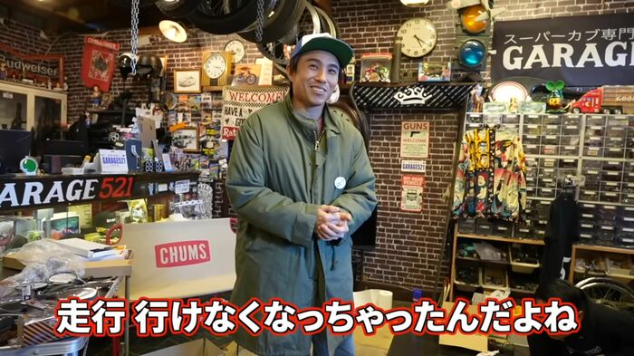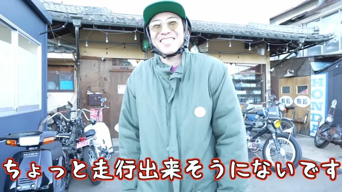 ヘルメットを着用し、今すぐにでも出発できそうな装備の中尾さんですが、「ちょっと走行出来そうにないです」と衝撃の一言。
