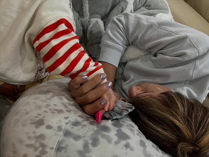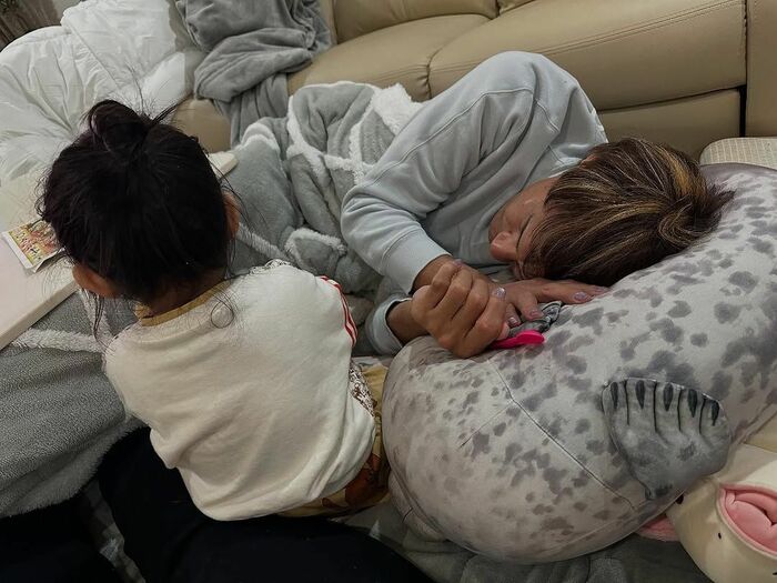 他にも、本並さんがうとうとしながらも、愛娘の手をぎゅっと握っている様子も公開。