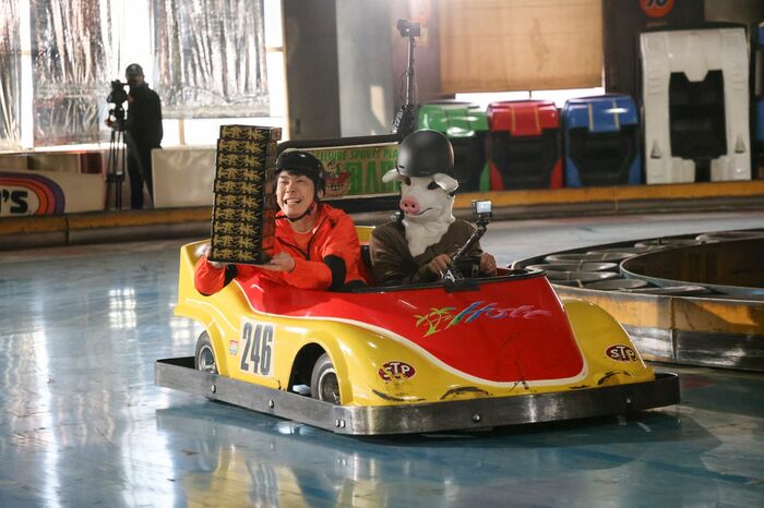 後半は、ブタのマスクを被った覆面さんが参加。ゲームでは、大吉さんに堂々とクレームをつけたり、あるエピソードを語る姿に「このしゃべり方と動き、なんか見たことある」(大悟)、「なんか聞いたことあるなぁ」(山内)とモヤモヤ。