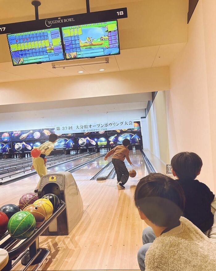 今回は、「息子お誕生日プレゼントのリクエストがプールとボウリング」とつづり、息子らとプールやボウリングを満喫する様子を投稿しました。